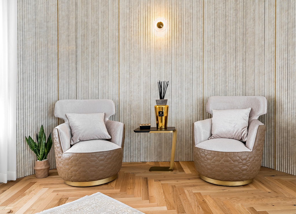 דיוק אומנותי ונוחות חסרת פשרות. כורסת COCO מציגה שילוב פרימיום של מעטפת עור מרוקעת ובד בוקלה רך על בסיס זהב יוקרתי. עם עיצוב ארגונומי וצללית מעוגלת, היא מגדירה מחדש את מושג האירוח בסטייל ומעניקה לכל חדר הילה של יוקרה אירופאית.