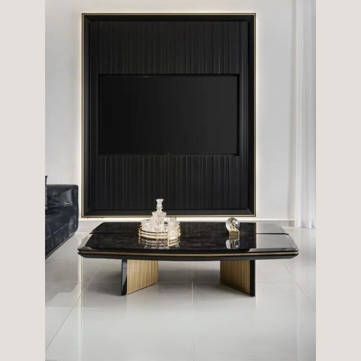 שילוב הגימור המבריק והפרטים האלגנטיים הופך את השולחן לפריט מרכזי בסלון - כזה שמוסיף עומק, סטייל ונוכחות מרשימה לכל חלל.